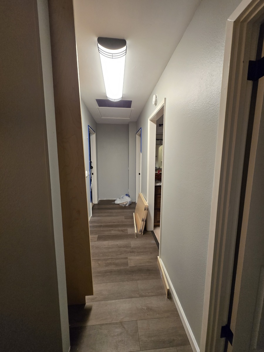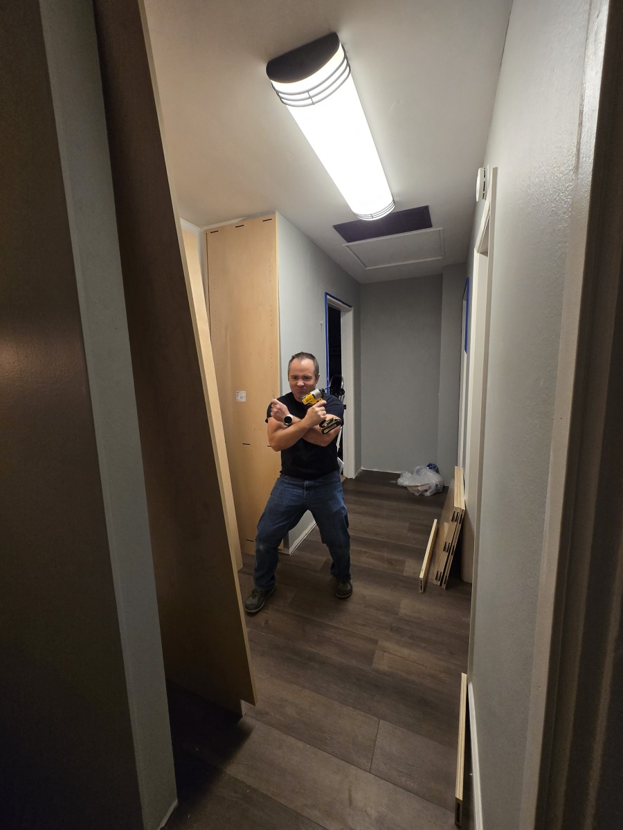 Timโs work has been a big burden this month. As his team prepares for a customer deliverable in mid-February itโs been on-call and on-site for 50+ hours a week. While the team is nice enough to work with, the deadline pressures are making it not so fun. At home, Tim was able to complete the flooring and molding work in addition to a rough fit of the new shelves weโre doing. Heโs been squeezing in time to get the last of the trailer cracks patched and the final end panels installed. With his ankle still hurting and shoulder not 100%, thereโs not been much workout activity aside from lifting all the heavy pieces of wood and pushing a paint roller. Hopefully heโll be able to get back to his workouts towards the end of February.